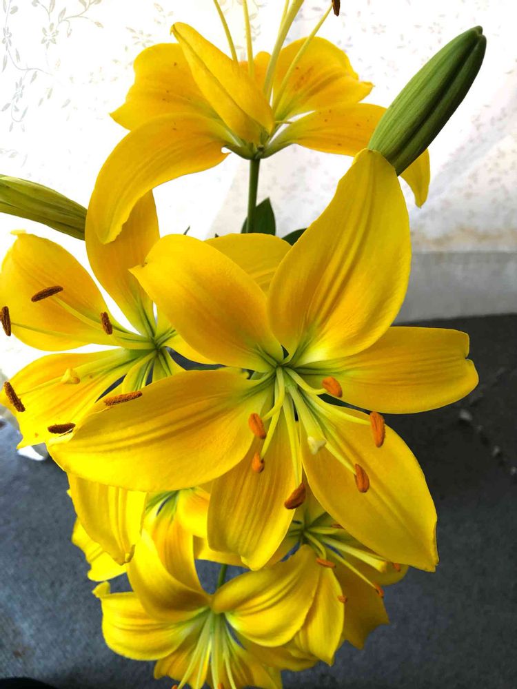 母の庭の百合です。目が覚める程のビタミンカラーです。