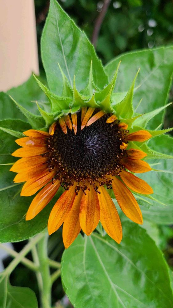 小さな鉢5号鉢で、育てていた違う種類のひまわり。