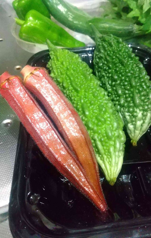 赤オクラを湯がくと、きれいな黄緑色になりました!