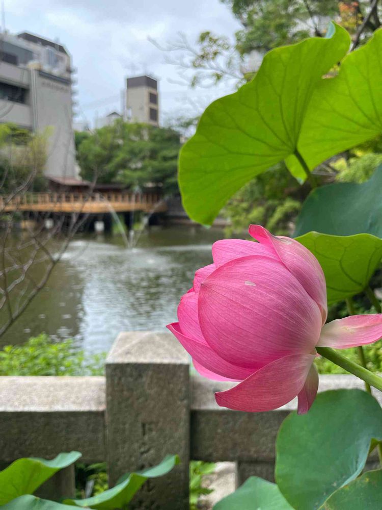 暑くて、汗だくになりながら神社にお参りして、境内散策していたら咲いていて、一気に涼やかな気持ちになりました😊