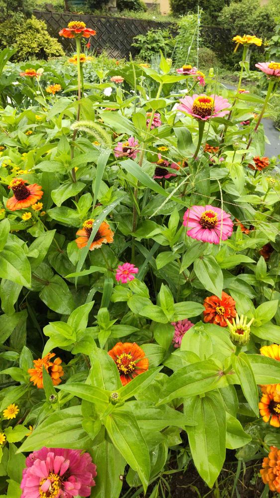 ご近所の畑で色とりどりに綺麗に咲いてた百日草のお花💮🌼🏵️🌸