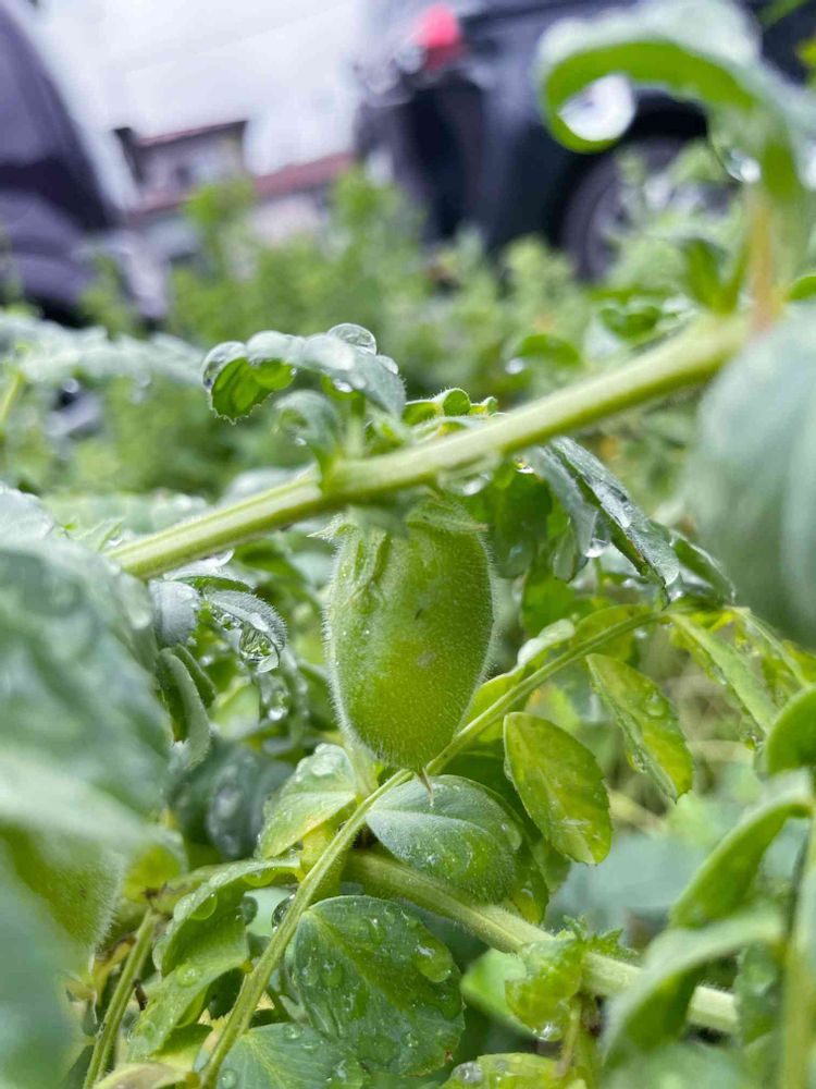 初めて植えたひよこ豆。小さい花が咲いたなーと思ったらいつの間にか実が。