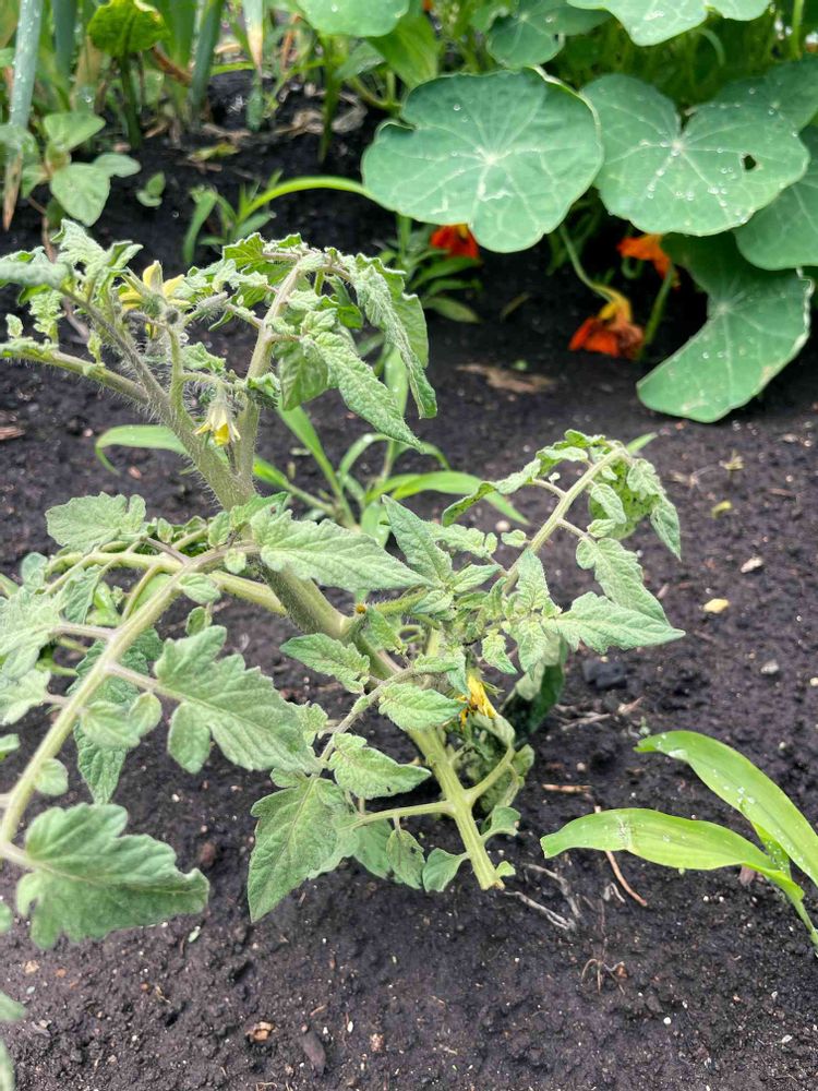 トマトの大きくなってた脇芽をプチッと取ってブスッと挿して1週間 wいやー、梅雨って事もあるんだろうけど しっかり根付いて気がついたら花が😅トマトって強い