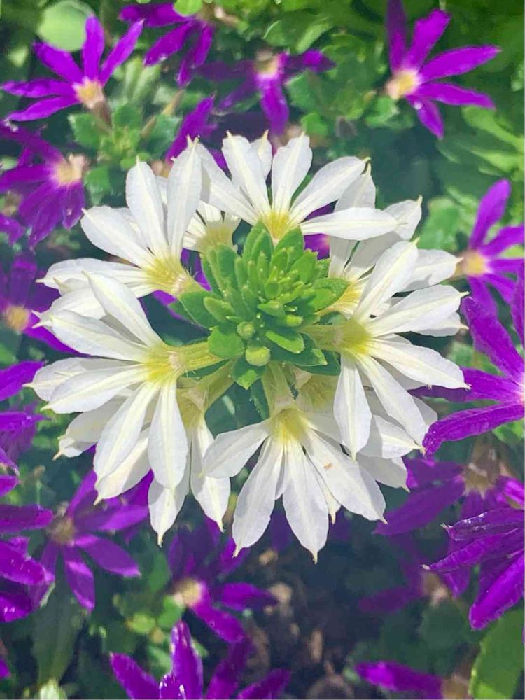 紫の中のホワイト、まるで真夏のフラワーアレンジみたいに素敵だね。