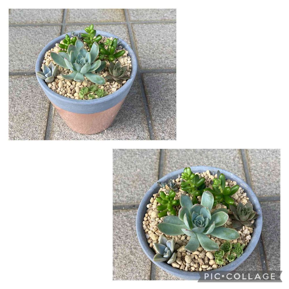 私も、多肉寄せ植え娘チョイスをしたのですが。調べたら日当たりと水やりがバラバラで😱秋になったら同じ好みのもので分けようと思いました😭