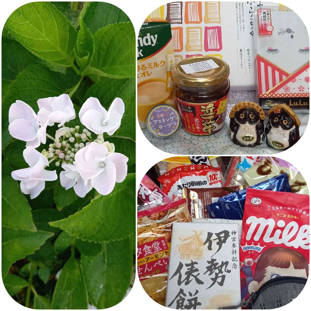 滋賀のお菓子おふらすく、近江牛のご飯だれ信楽焼のタヌキさん、その他コーヒーにパック等々