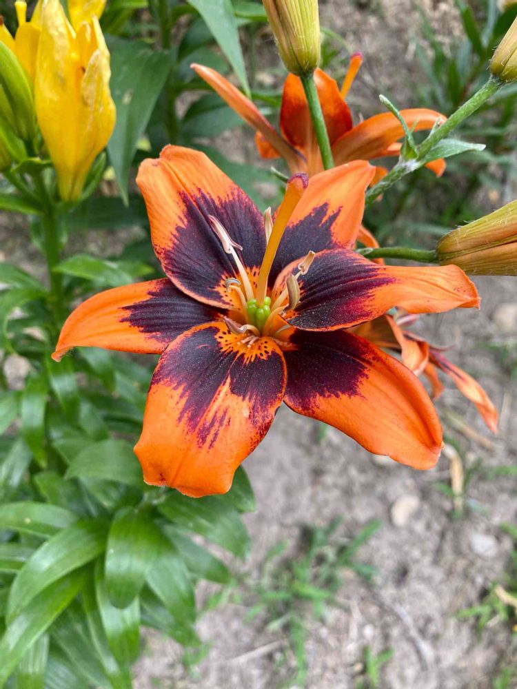 ピエトンと同じようにオレンジ色の花びらの真ん中に赤茶色の模様が入るユリの正体が分かりました。