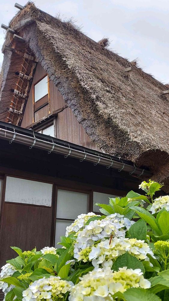 合掌造りとアジサイ🌸