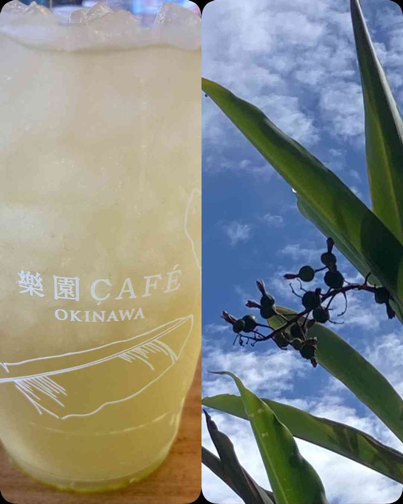 身体を冷やすためエアコンぎんぎんのカフェでキンキンに冷えた月桃茶をいただきました🍹 カフェの名前通り楽園✨✨