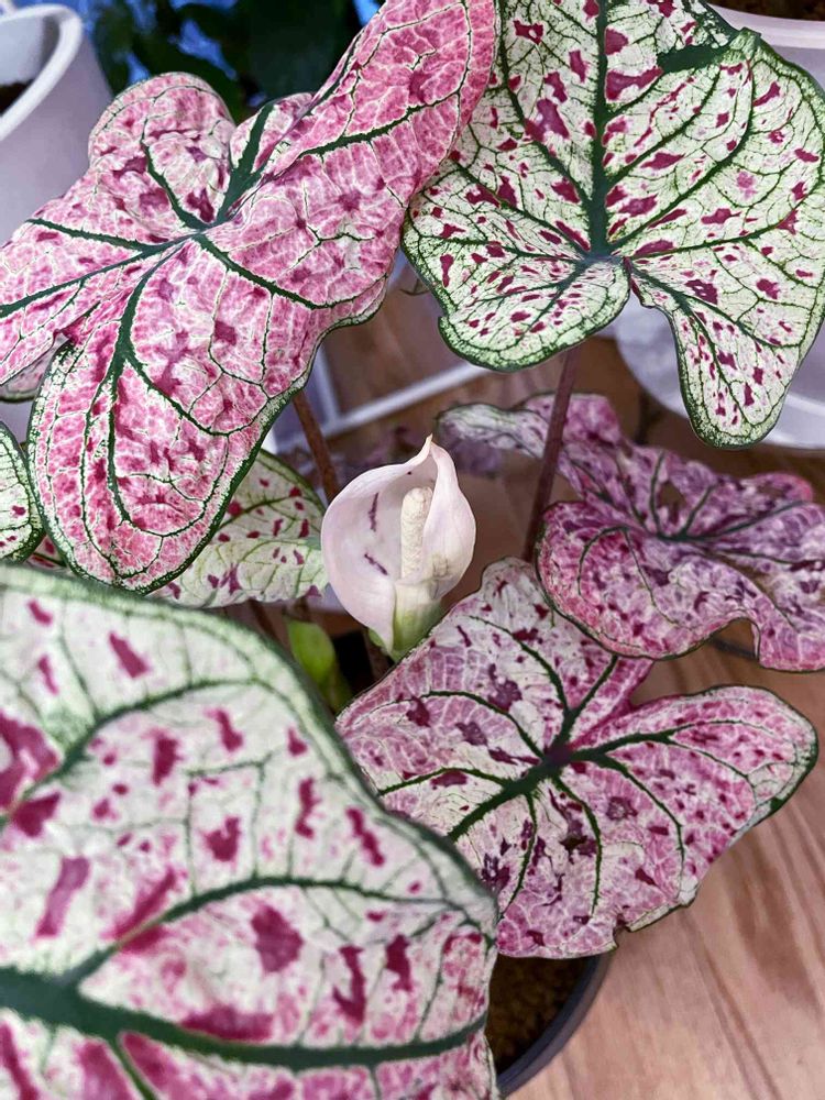 たしかに!アグラオネマとかと一緒!(°▽°)カラジウムも芋だからお花も咲くんですね♡