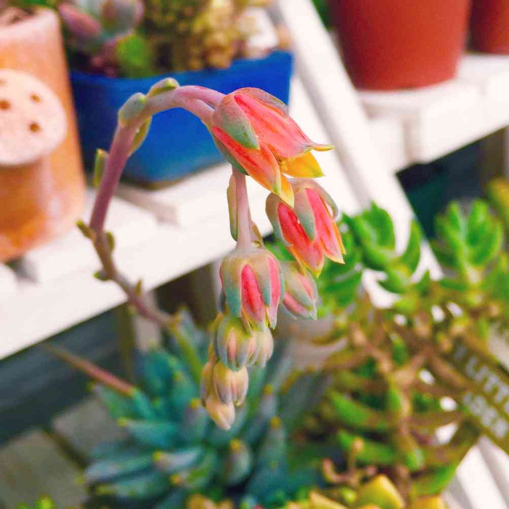 やっぱり多肉は葉っぱから花が予想できない〜。黄色の花が咲くと思ってました…