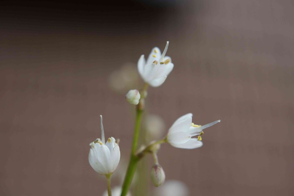 10センチちょっとですかね。花のサイズは、縦5ミリ、横4ミリ程です。ベランダのテーブルに乗せて、下から撮ってみました。あぁ、だからクタクタになったのね😅