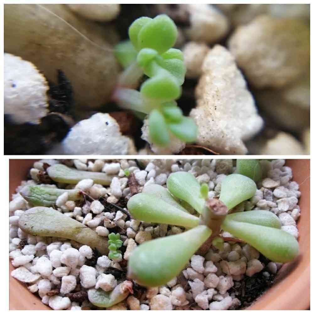 パールビーンちゃん、上部をカットしたあとの下側からも、葉挿しからも増える模様(^ω^)