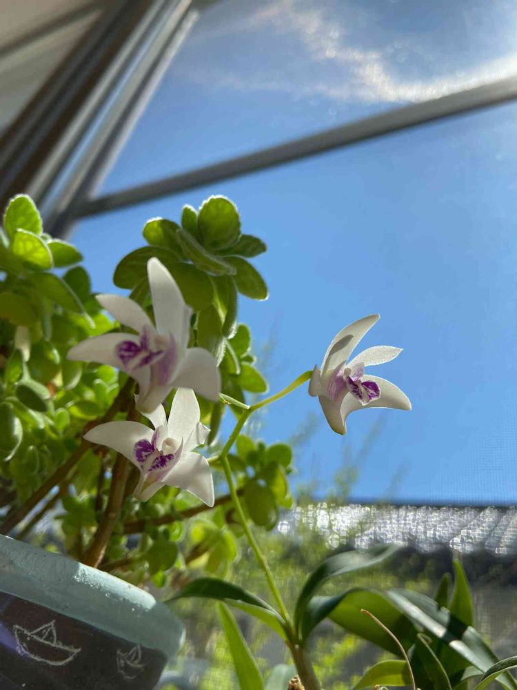 小さな白いランが涼しげに見えるかな?😄