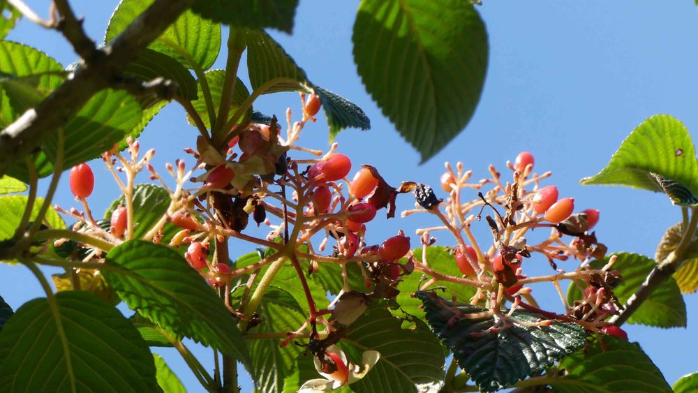 花が終わって全部枯れ落ちてると思ってたオオデマリに実がついている。