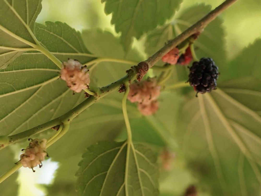 葉は養蚕用に使われますが黒紫色に完熟した実は甘くて美味しく食べられます😊