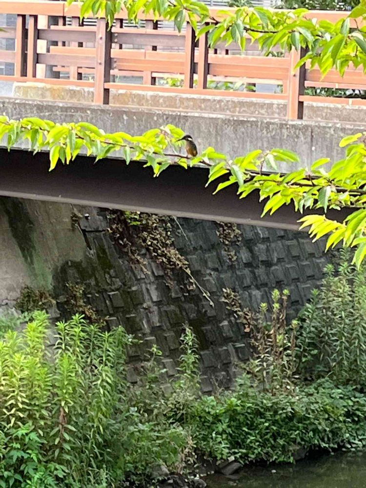 鳴き声が聞こえ川のほうをみたら目の前の桜の木に止まってくれました〜🐦カワセミさん