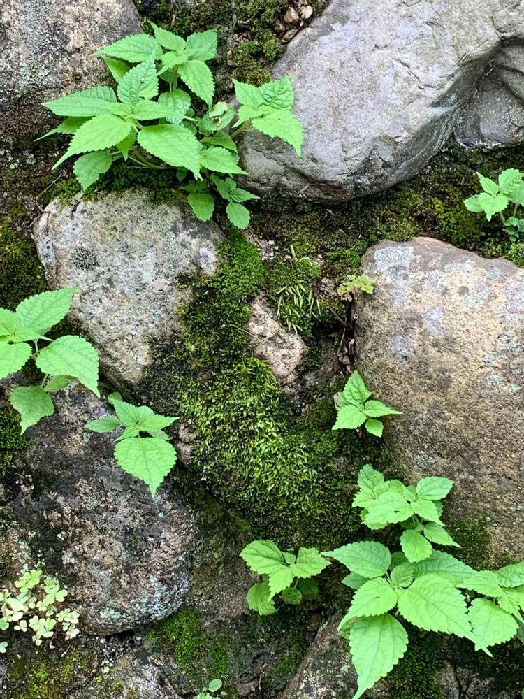 石垣に生える苔さん、みどりさん🍀こういう自然にできたアートが美しく感動します。