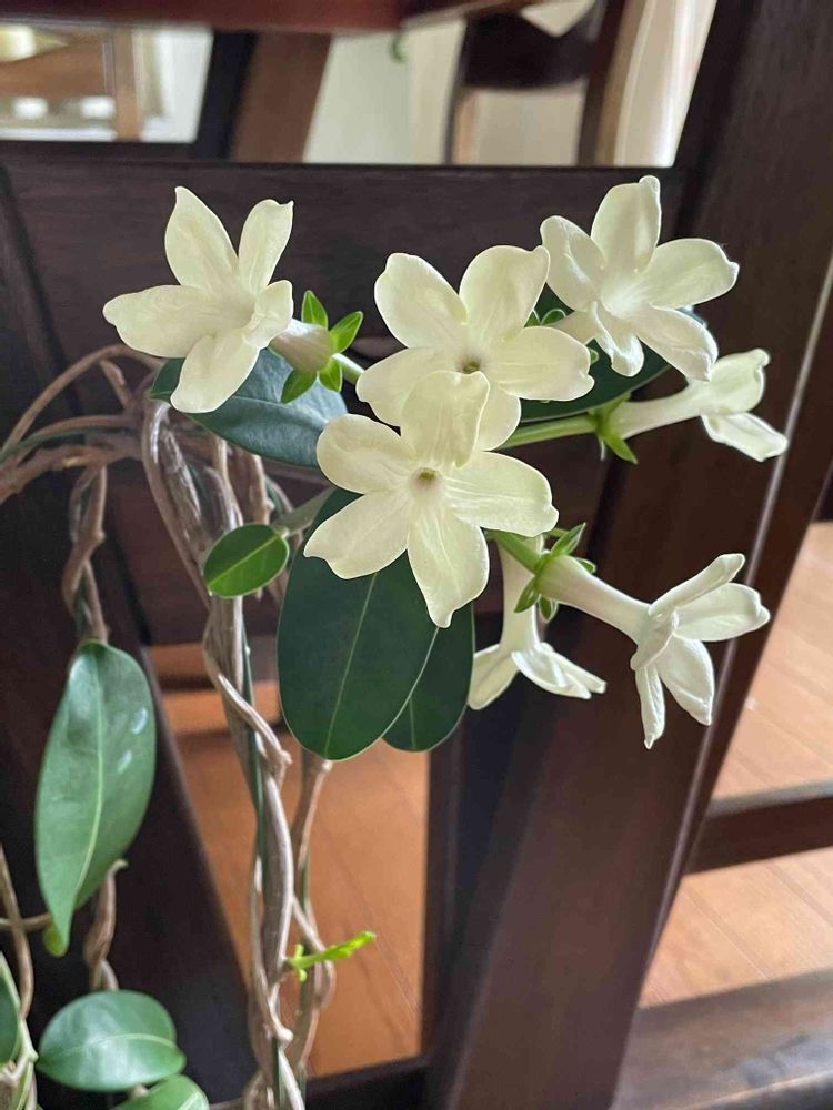 白いスッキリしたお花と、艶やかで綺麗な葉っぱに良い香り…全てが癒しになりますね🥰