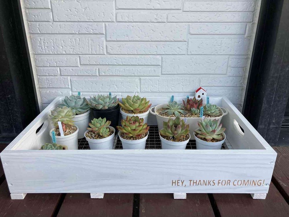 うちにいた子と合わせて、おひとりさまエケベリアをまとめて管理しようと、専用の木箱をメルカリで買ってみました。