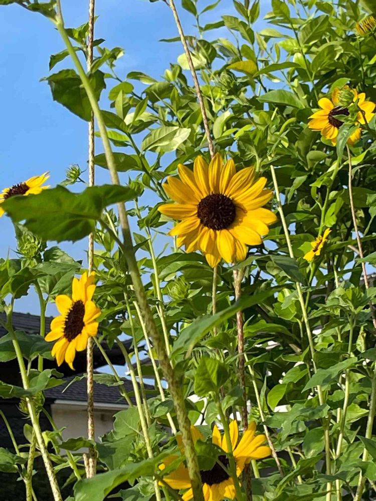 今年は我が家は零れ種もなく今日子さん宅の🌻で元気頂きました