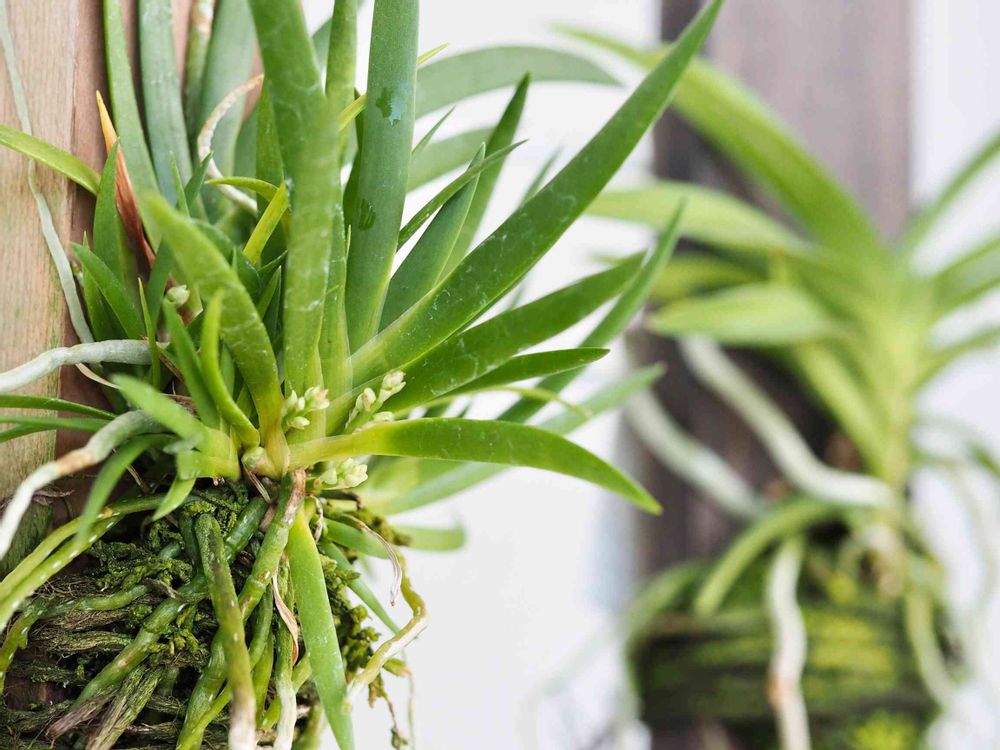 春の蘭展で店主のおじさまが「これとっても綺麗な花なんだよ〜ぜひ見てほしい!」とオススメしてくれたので今年咲きそうな良さそうな株を選んでもらってお迎えした着生蘭のポダンギス