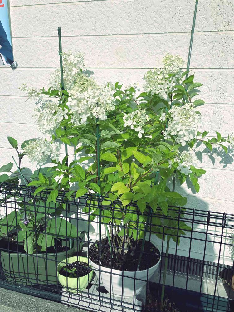 ノリウツギが咲きました。去年花屋さんで購入してすぐ散ってしまったのですが今年はずっーと咲き続けて色の変化を見せてくれるでしょうか💌