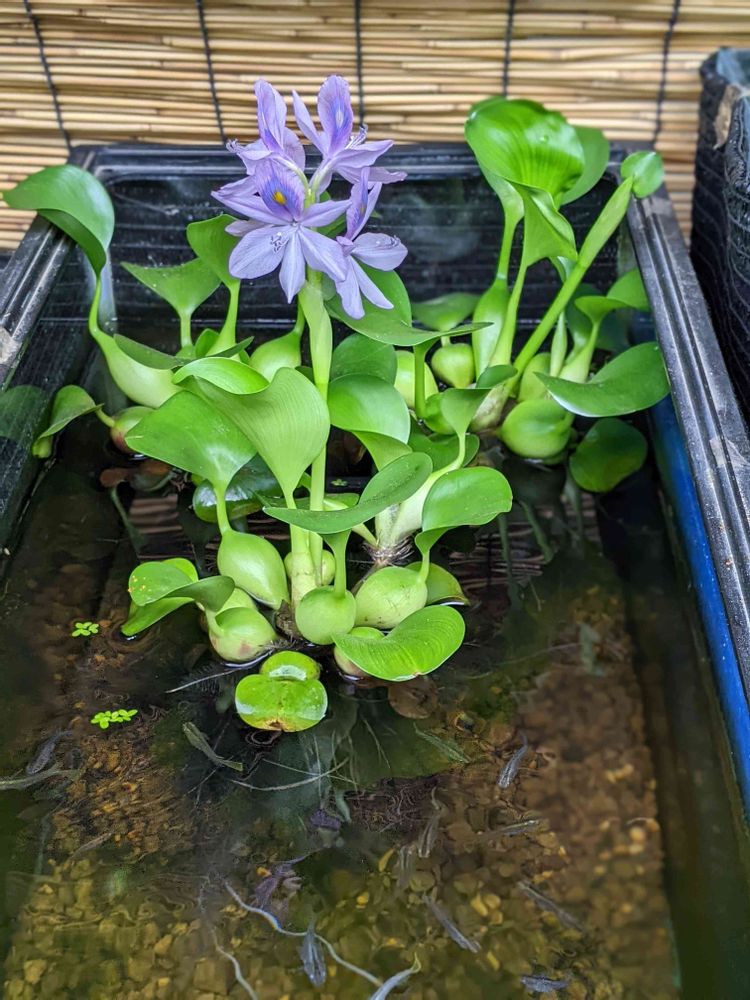 メダカの水槽にホテイアオイの花が🈵✌️😄🎶🎉