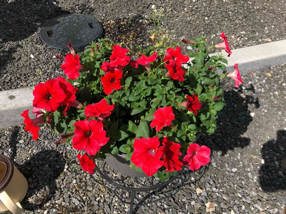 半日陰で養生中のサフィニアシャインレッド様