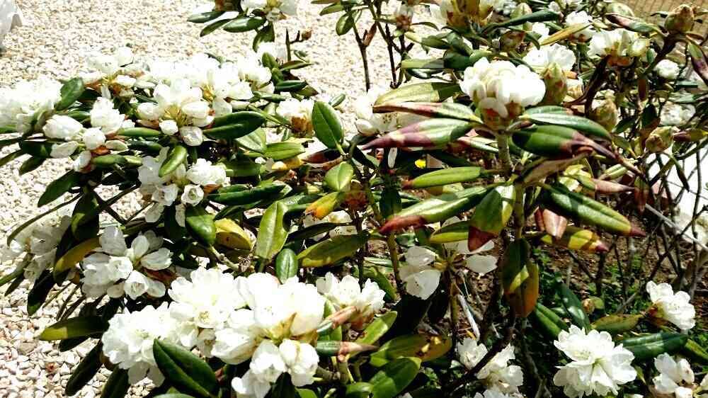 昨春に実家から移植した白のシャクナゲ。 ちゃんと根付いてくれたのか心配だったけど無事に咲き始めましたヽ(=´▽`=)ノ よかった〜😊
