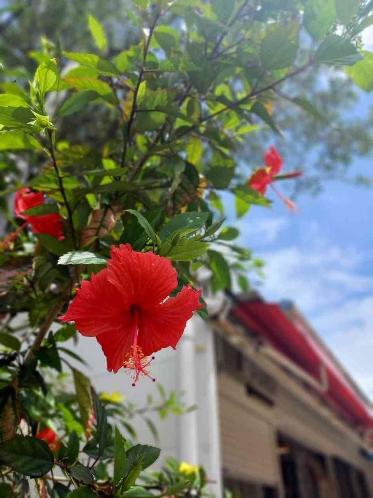 沖縄の青い空に真っ赤なハイビスカスが似合います❤️