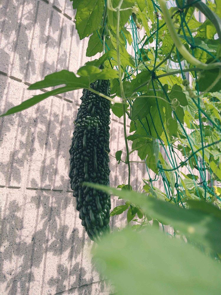 胡瓜より成長速度が早く、茎も細い+葉も薄いので、我が家では収穫目的よりグリーンカーテンとしての役割のゴーヤです。が、やっぱり成ると嬉しい😄