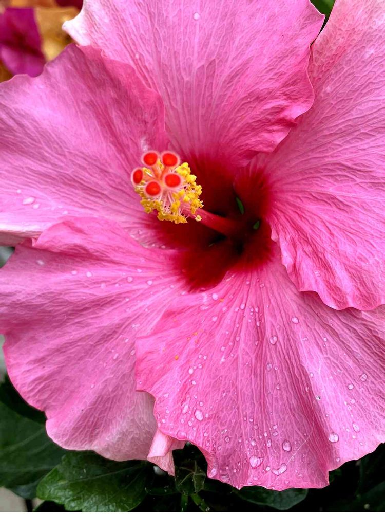 ピンク色のみずみずしいハイビスカス🌺に、出会いました