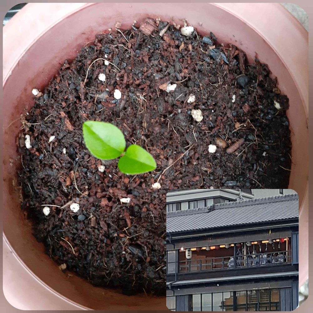 ご近所さんにいただいた夏蜜柑🍊の種を娘が植えたのが芽を出しました🌱