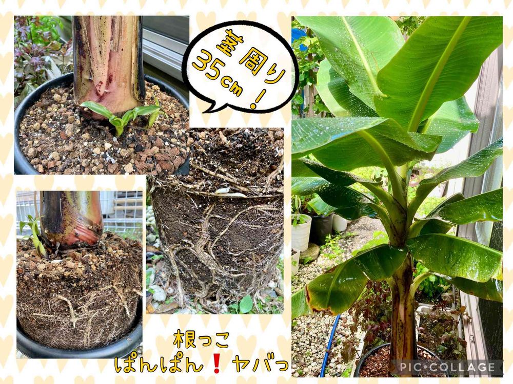 昨日 子株分けた時に 母ちゃんバナナ 根っこが土上に出てきてるのが気になって