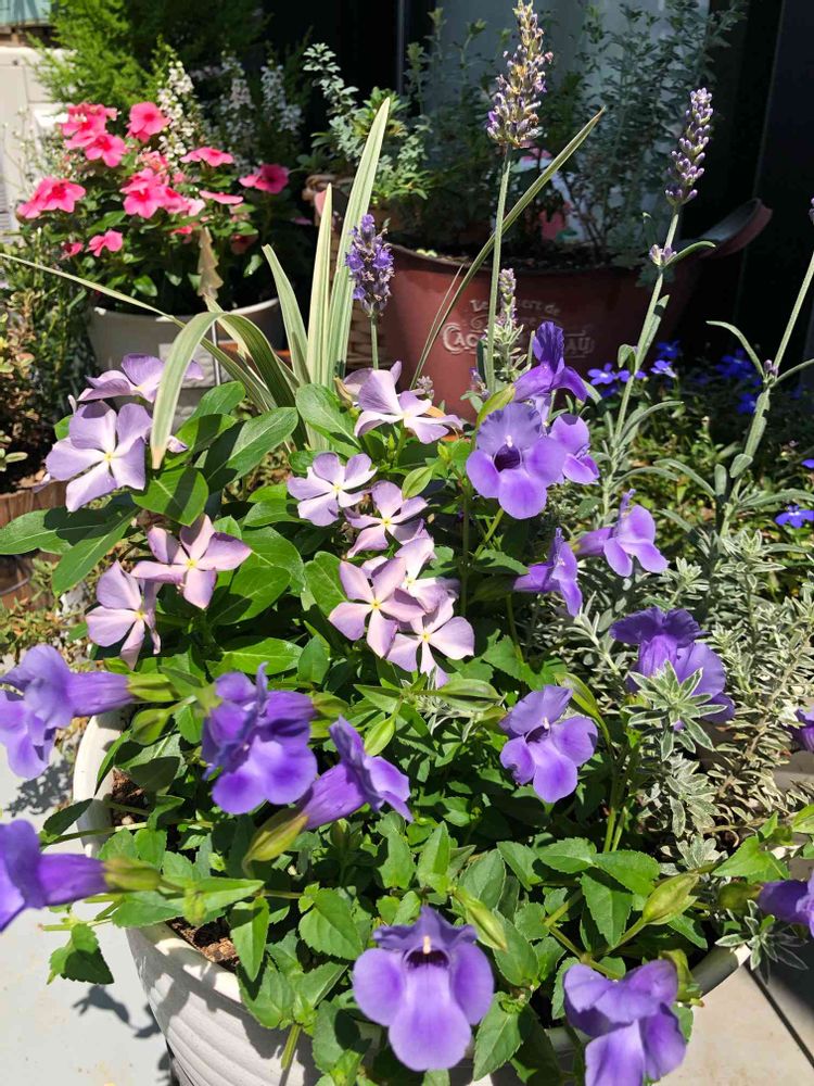 暑い夏、少しでも涼しく感じられるような爽やかな寄せ植えをテーマにしてみました💜💙