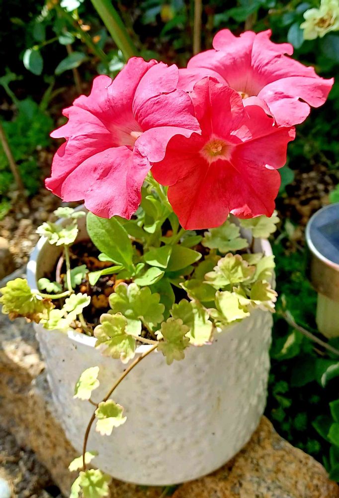 ☝️…サフィニア~鉢あげした小さい苗から🌸🌸🌸😊👍