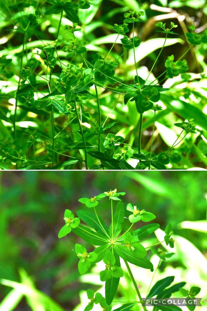 緑の草むらに緑濃い「タカトウダイ」💚 ちょっと見難いですよね。