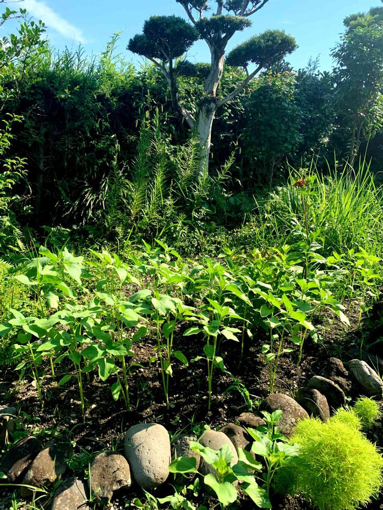 種から育てたひまわり、たくさん育ちました😄開花までもう少し😊