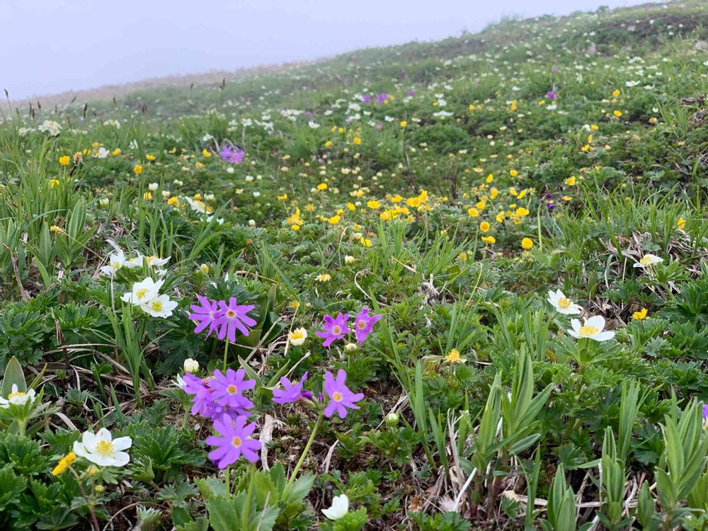 この日はガスって風も強くて寒かったけど、ここの天空のお花畑はやっぱり良い♡