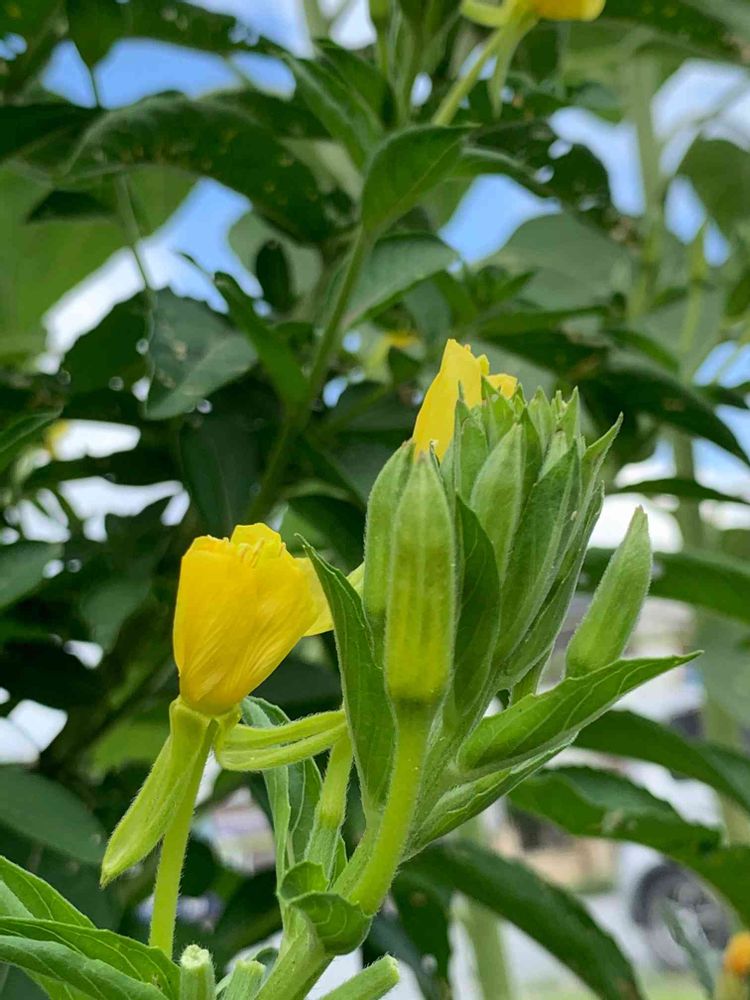 マツヨイグサの黄色い花はかわいいんだけど、オシロイバナと同じく夕方以降の開花だからか