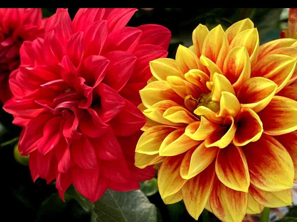 真っ赤と黄色のダリアさんのツーショットをアップで❤️💛
