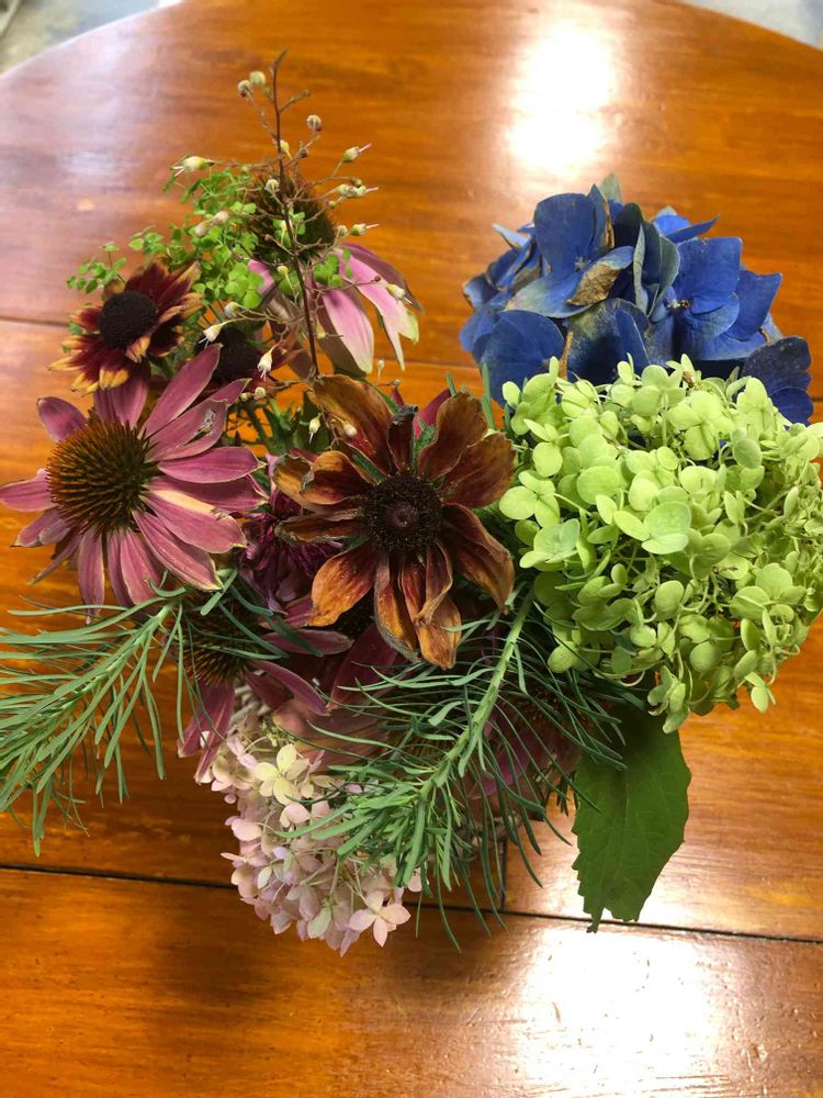おはようございます☂️朝から小雨が降っています。朝庭に出てちょっと切ってきました💐
