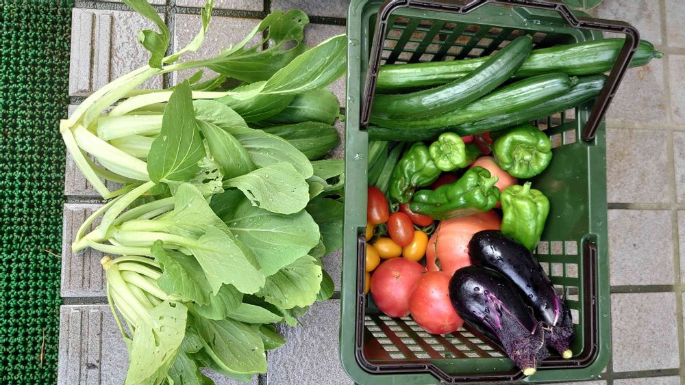 小さな庭,チンゲン菜。,ピーマンとナスの投稿画像