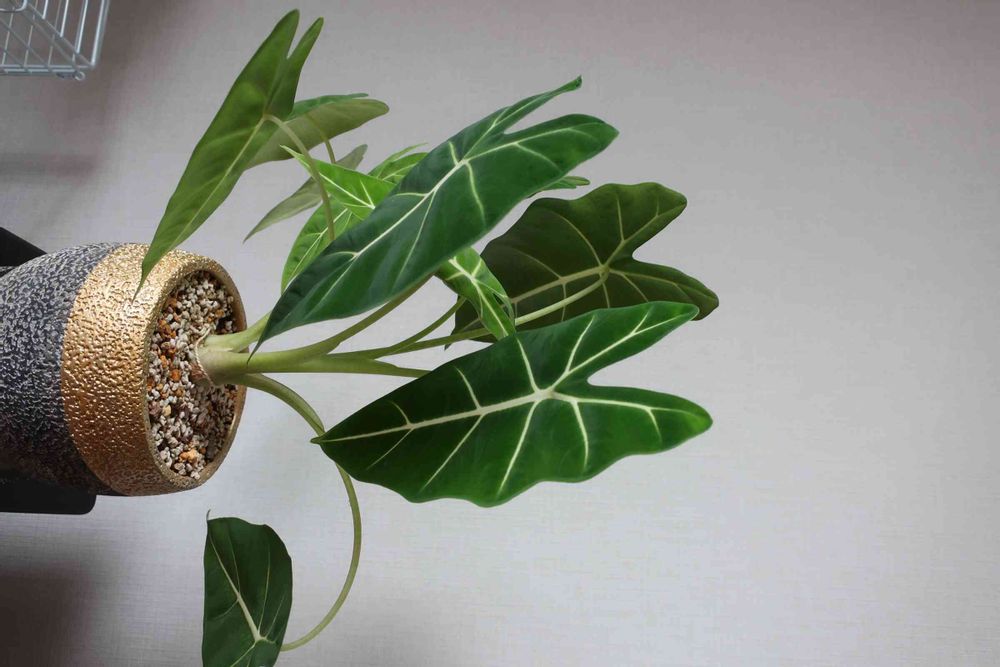 我が家のアロカシア グリーンベルベットが下をいつも向いていて何か悩みでもあるんか😢