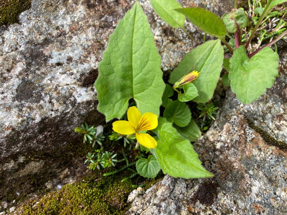スミレ科クモマキスミレかも、葉はキク科クロトウヒレン