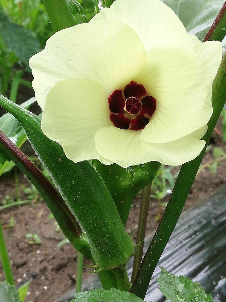 オクラの花、こんなに可愛らしいお花が咲くんですね💛