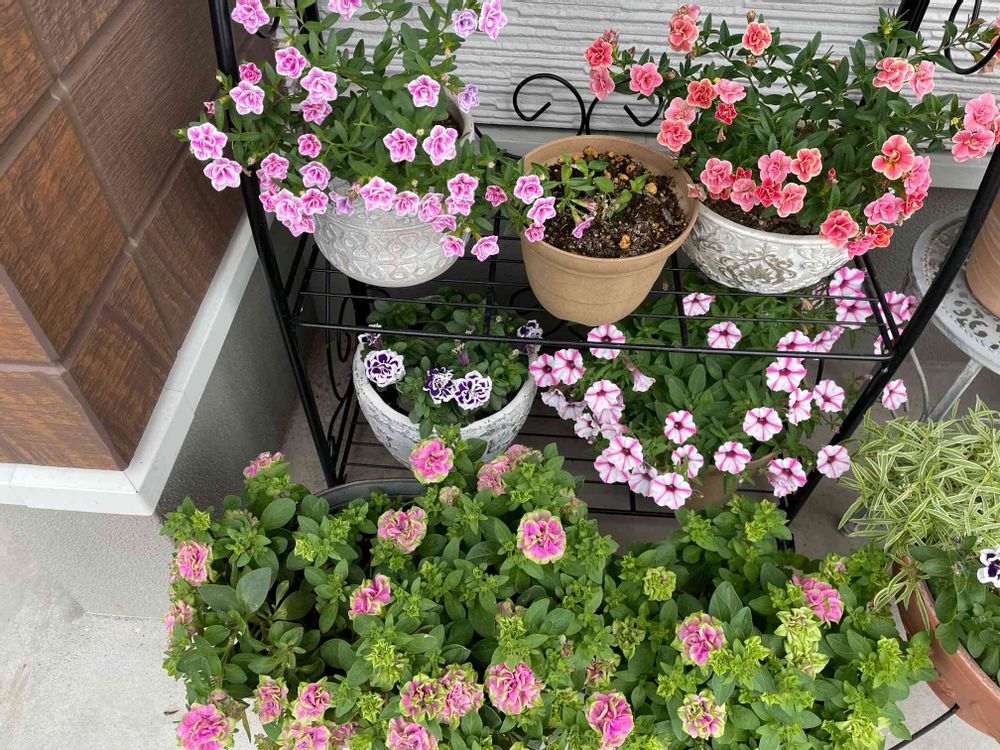 バルコニー/ベランダ,カリブラコア,八重咲きペチュニアの投稿画像