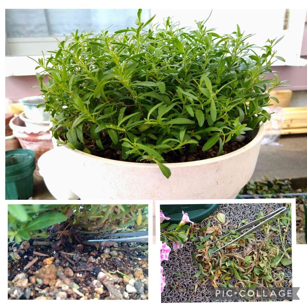 株元の枯葉・枝はピンセットを使い取り除くが、多量にあり今日だけでは終わらない>.<