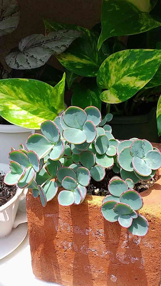 こちらからもおはようございます😊 ピンクの縁取りがとっても可愛くて、葉っぱも艶々していますね🌿 レンガ鉢?ですか??とってもおしゃれで可愛いです😍